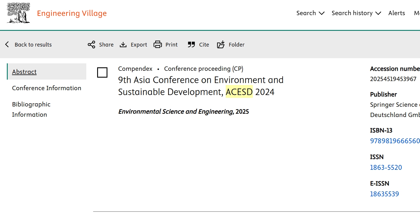 International Journal of Environmental Science and Development, which will be indexed by Scopus( CiteScore 2024: 1.5), Chemical Abstracts Services (CAS), CABI, DOAJ, Ulrich Periodicals Directory, Crossref, ProQuest, etc.